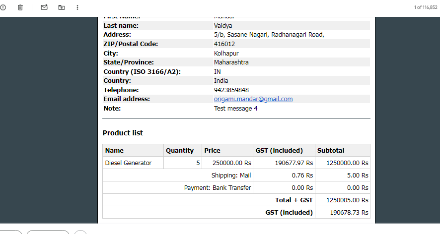 No any product details are delivered to the inbox of the website owner, but buyer gets a proper mail with all the details -