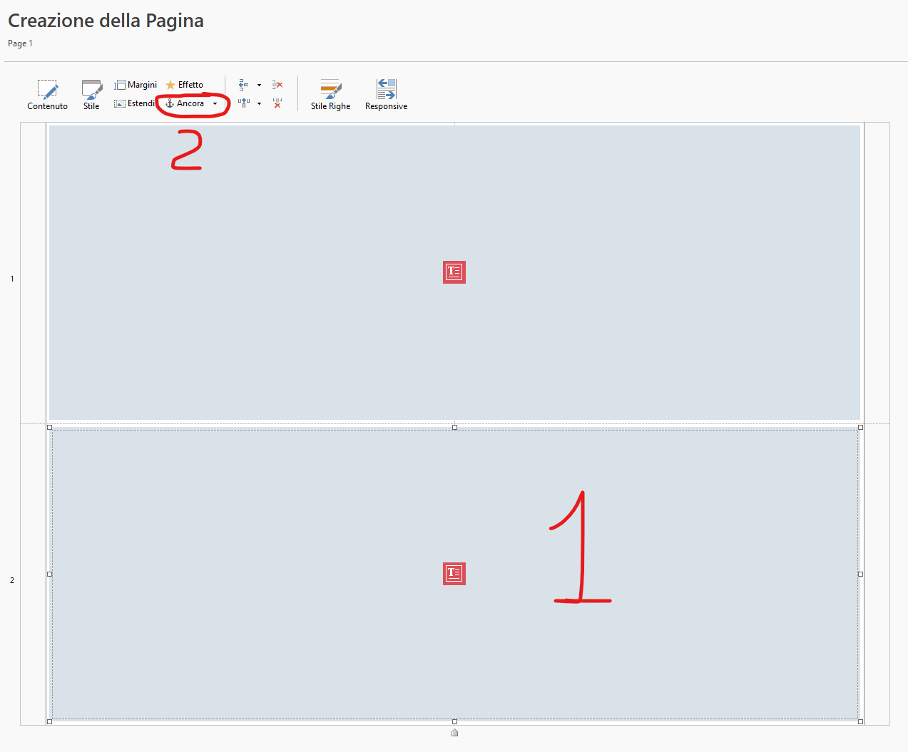 be è semplice vai sulla pagina, selezioni l'oggetto testo dove hai la ricetta 1, poi clicchi sulla Ancora (2) e dai un nome all'ancora esempio:nome-ricetta