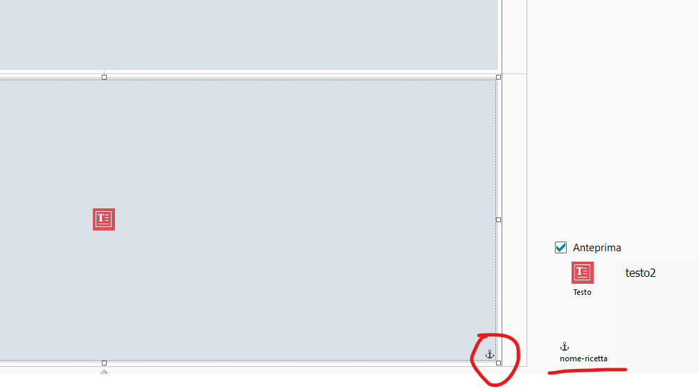 una volta che avrai dato il nome dell'ancora all'oggetto lo vedrai con il simbolo ed il nome