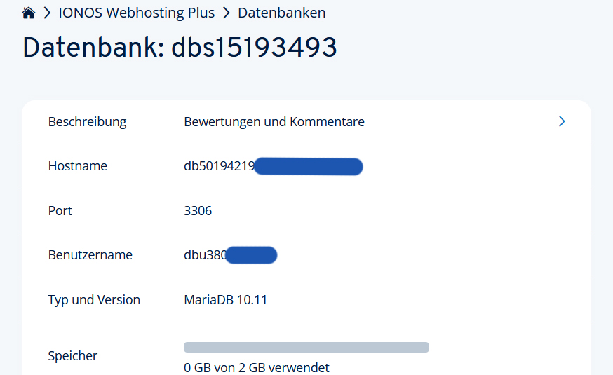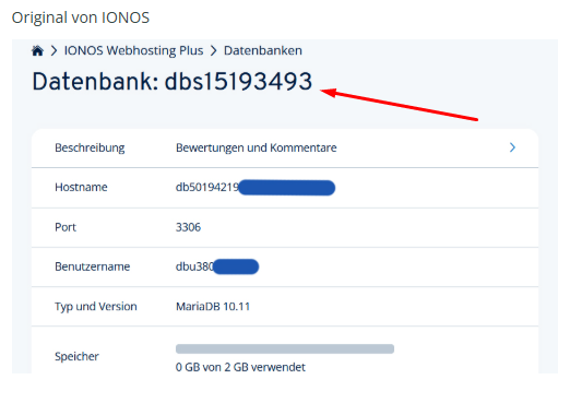 So wie es aussieht ist die IONOS-Datenbank-Angabe der Datenbankname für WebSite X5.