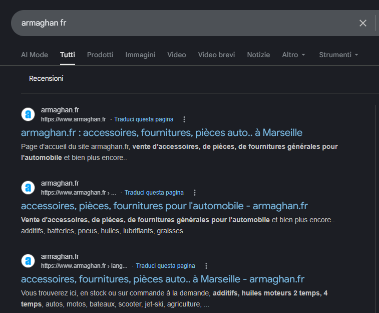 Par exemple, en recherchant simplement armaghan fr, trois pages s’affichaient où il n’est pas visible.