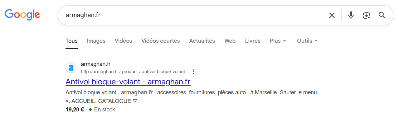 Indépendamment de l'un ou l'autre des 2 termes de recherche et sachant que le lien en question ne devrait pas être directement visible lors de la navigation sur le site, Sauter le menu. ×. ACCUEIL. CATALOGUE ▽. doivent-ils toutefois chacun vraiment apparaitre, oui ou non, dans la description des résultats de recherche comme on peut les voir ci-dessus?