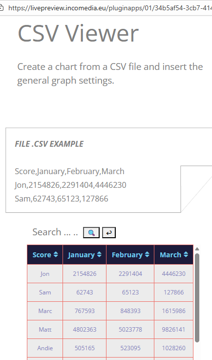 Hola hay esta funcion para insertar un buscador para el objeto CSV Viewer