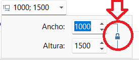 ...para cambiar la proporción tienes que hacer clic y abrir el candado...