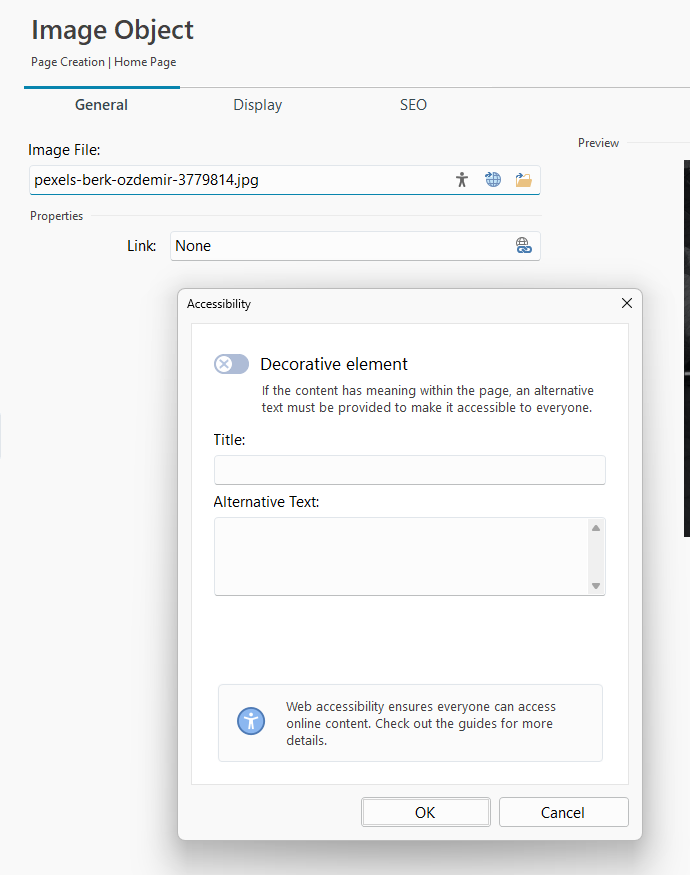42 errori si riferiscono al fatto che negli oggetti immagini (a loro volta collegati con galleria con showbox) inseriti nella pagina 'immobili' ma anche nel modello e nella home page non è stato inserito il testo alternativo.Ma io ho guardato attentamente e nella versione attuale del programma sembrerebbe non essere più presente il campo 'testo alternativo' di seguito al titolo dell'immagine nella sezione SEO dell'oggetto immagine.
