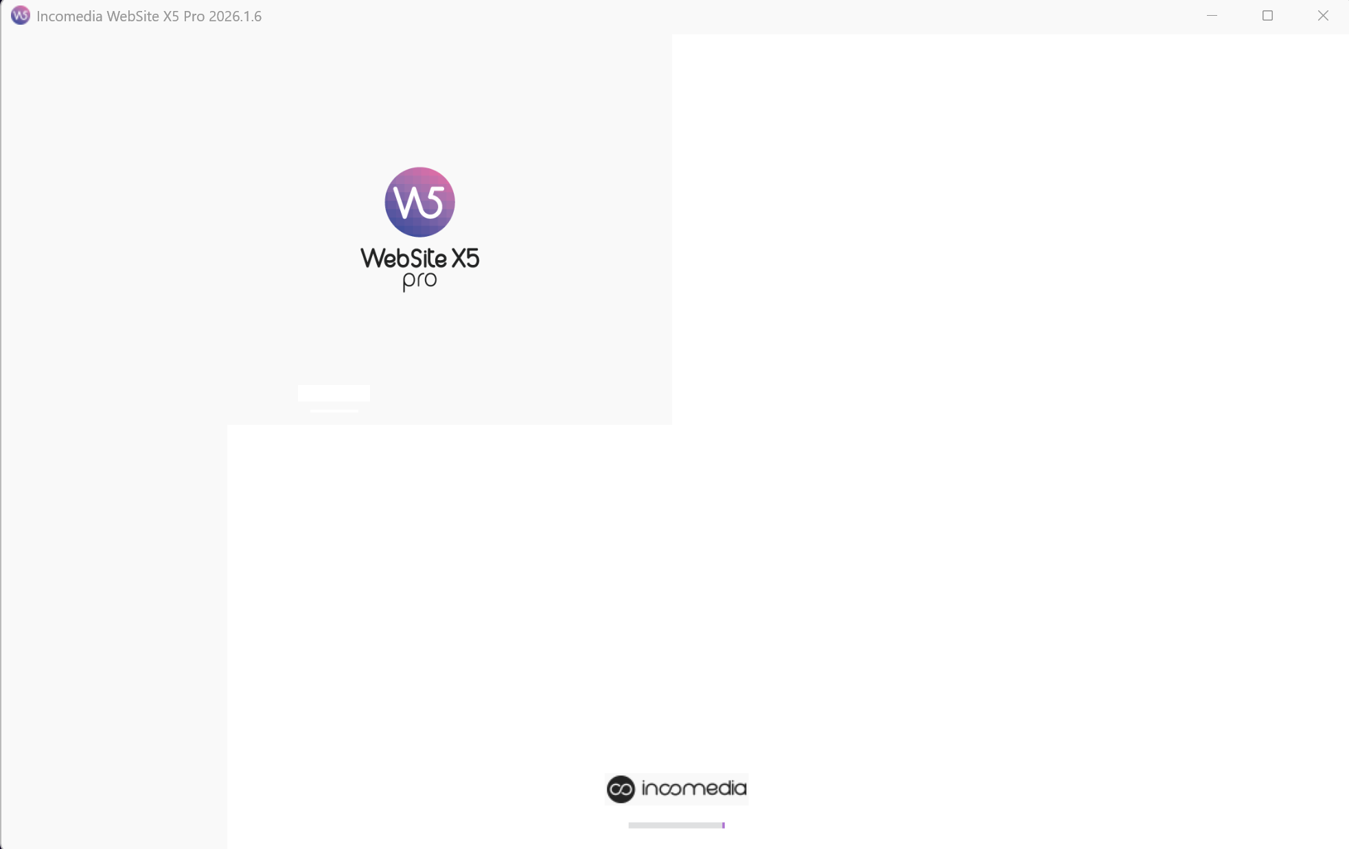 Je rencontre actuellement un problème à l'ouverture de website x5 pro. Lorsque je clique sur l'icone, la page de démarrage reste bloquée sur cet écran :