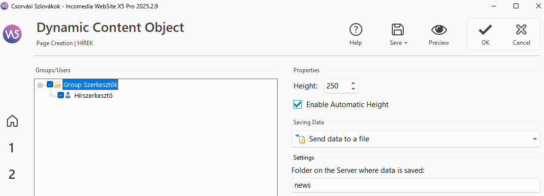 I created a website using the Dynamic Content module. In WSX5 preview, when displaying with HTML extension, the container name is: #dynObj_15_02_container