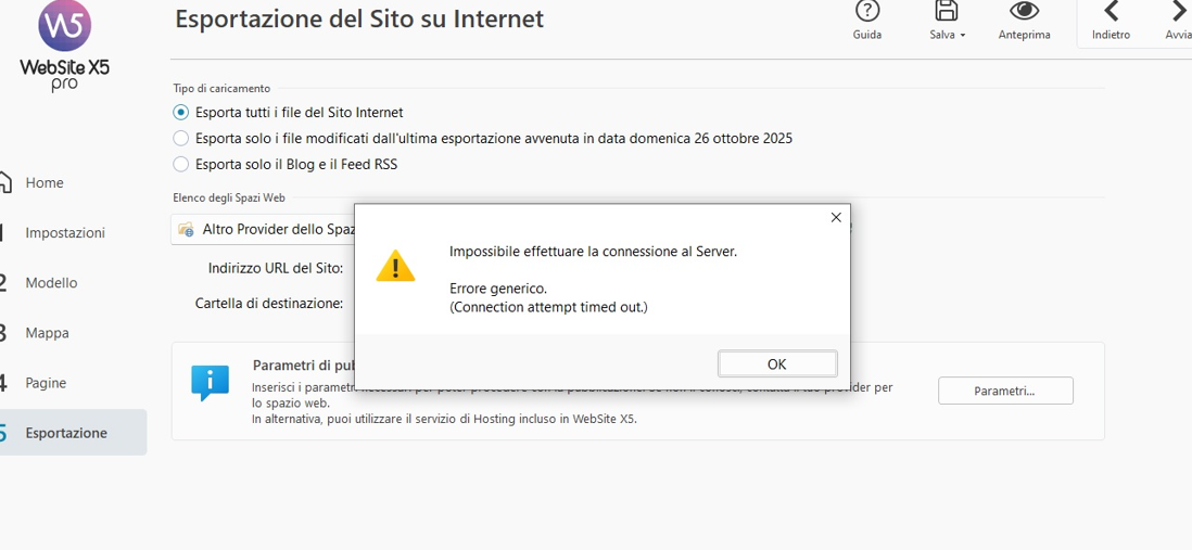 Hai per caso a disposizione strumenti come FileZilla per poter testare i parametri utilizzati al di fuori di WebSite X5?