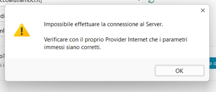 i dati presenti in questa sezione non rispondono al formato tipicamente utilizzato da Aruba, e ti suggerisco quindi di verificare quali sono quelli corretti, tuttavia se l'errore che si presenta è quello nell'immagine sottostante, ciò significa che anche i parametri nella sezione FTP sono incorretti.