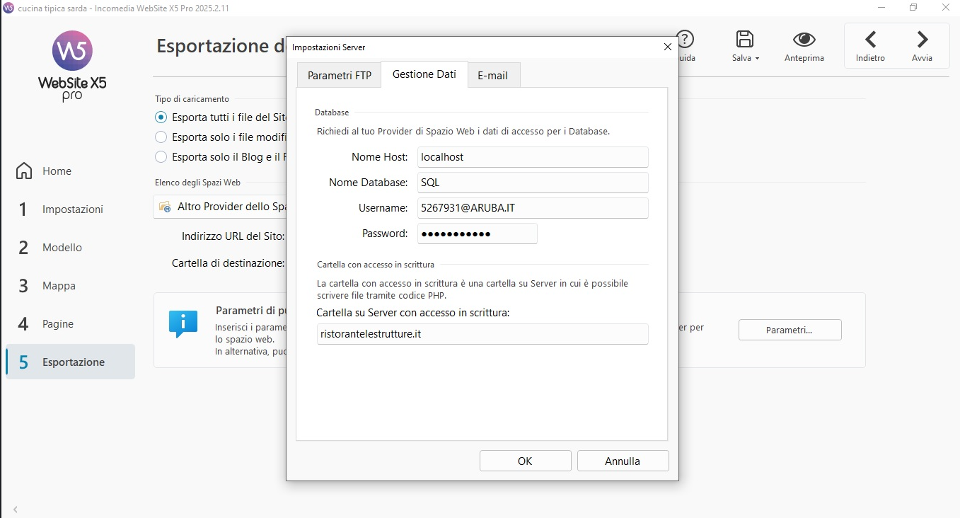 Dati per database sono su email attivazione di Aruba non sono quelli FTP