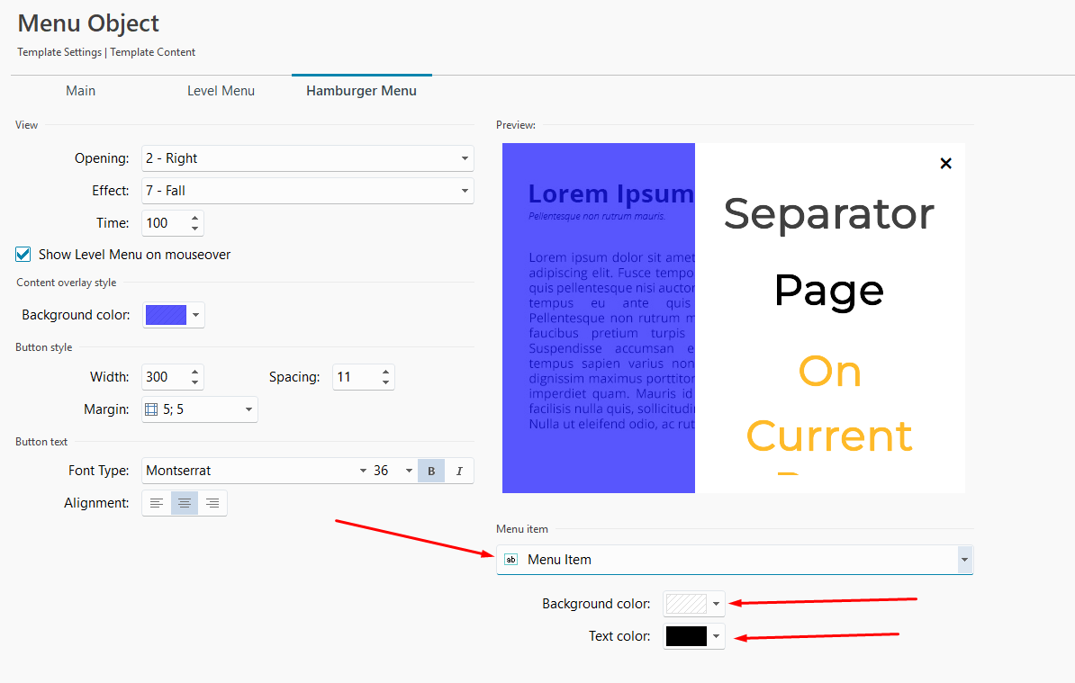 vous pouvez modifier ces paramètres dans les réglages de l’objet Menu, dans l’onglet Menu Hamburger.