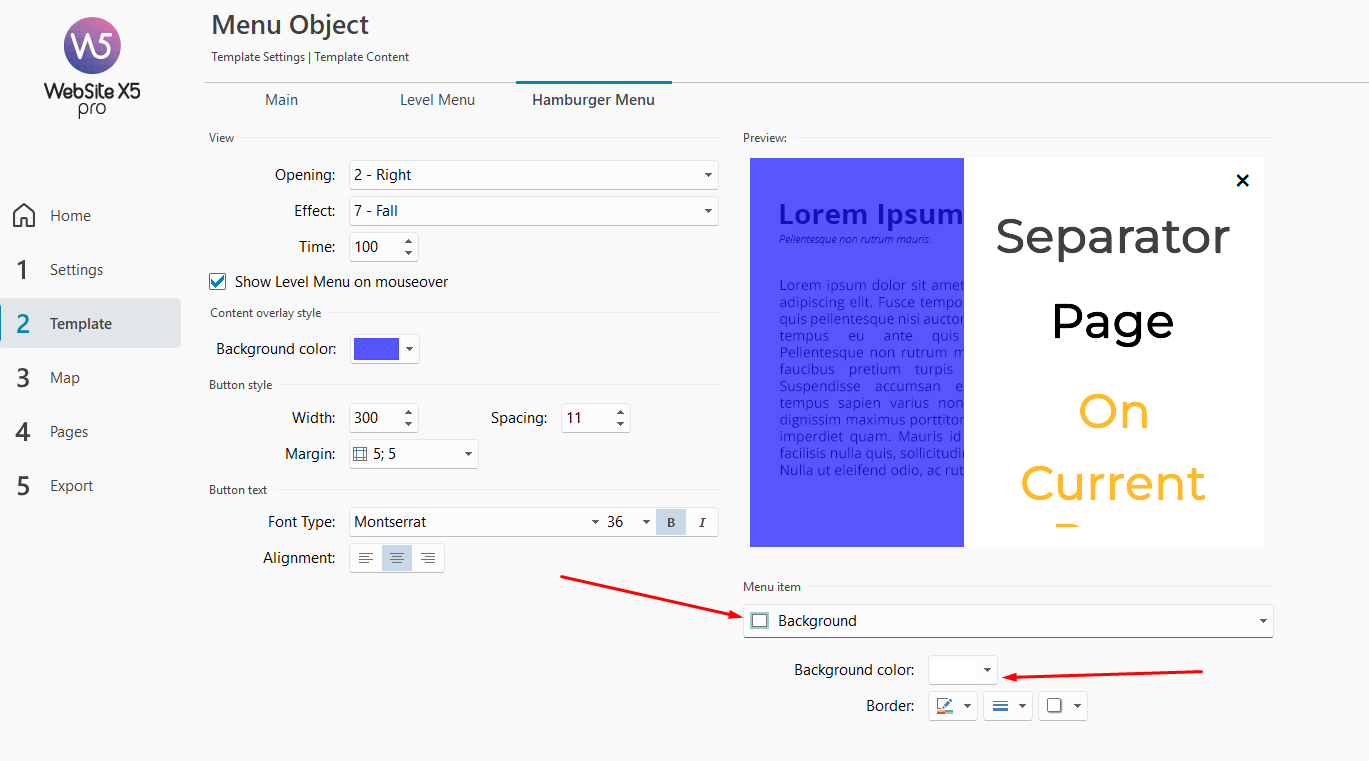 Vous y trouverez un menu déroulant où vous pourrez choisir les paramètres pour l’arrière-plan du menu lui-même et pour les éléments du menu.