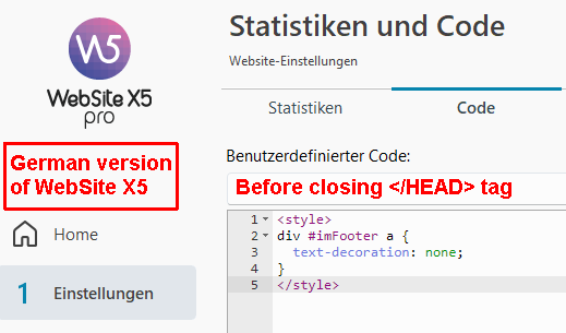 With a text object in the grid at "4 pages" I could switch off the underlining of the links using CSS code, but I haven't been able to do this yet with a text object in the footer.