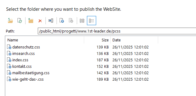 Css-Dateien 0 kb groß, wenn website-Assistent auf den Webserver überträgt