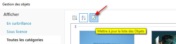 3) Rouvrez WebSite X5, allez dans la section de gestion des objets et cliquez sur le bouton pour mettre à jour la liste des objets