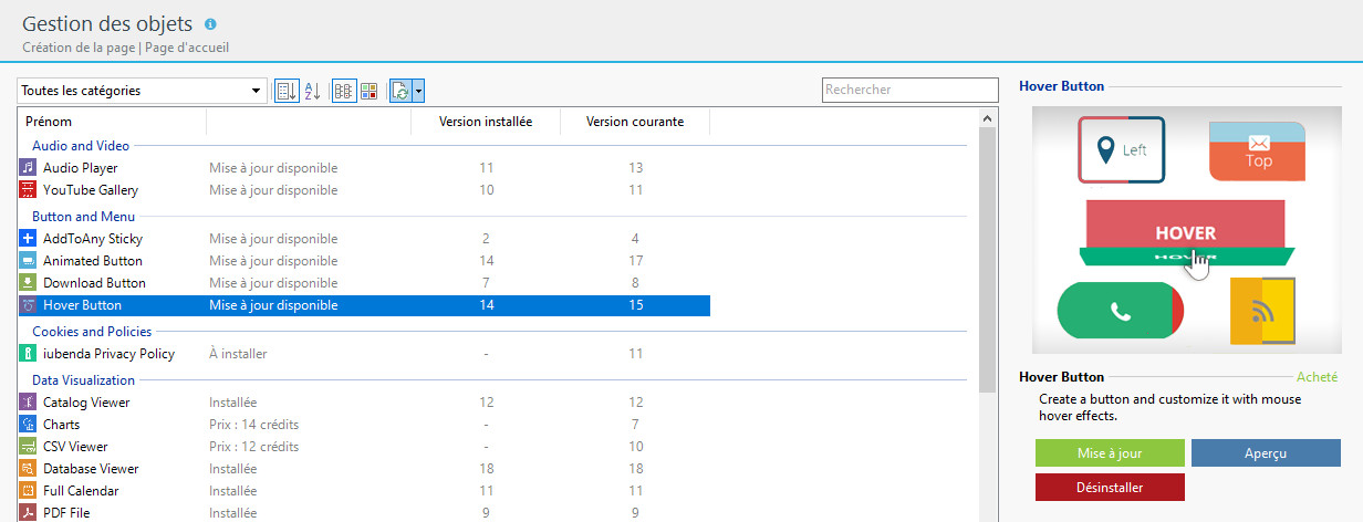 Depuis la dernière mise à jour, je n'ai plus accès au contenu de l'objet "Hover Button" et pire, je ne peux plus en créé de nouveaux... Suis-le seul ?