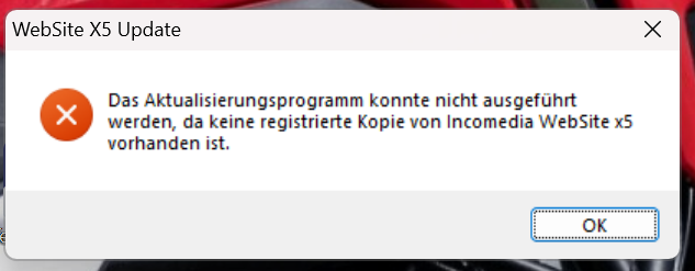 seit ich Website X5 agency installiert habe, funktioniert der Update aus dem Programm nicht mehr. Es erscheinte folgende nervende Meldung: