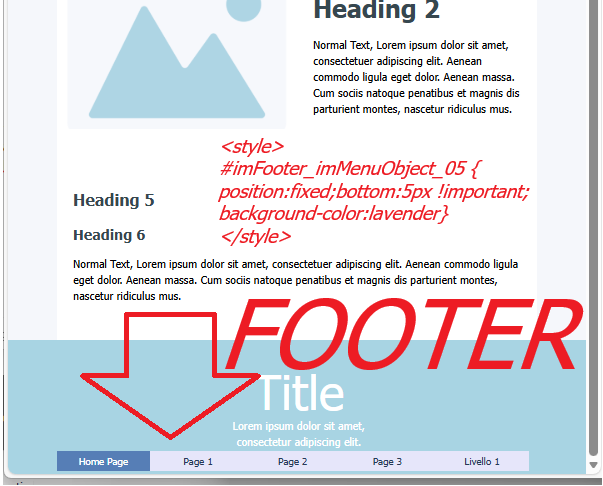 <style> #imFooter_pluginAppObj_05, #imFooter_imObjectImage_07, #imFooter_imObjectImage_08, #imFooter_imObjectImage_09, #imFooter_imObjectImage_10, #imFooter_imObjectImage_11{position:fixed;bottom:5px !important;background-color:lavender}</style>