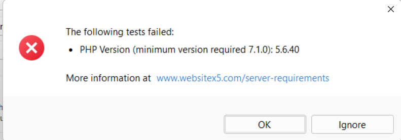 WebSite X5 supports php 8.2 only.