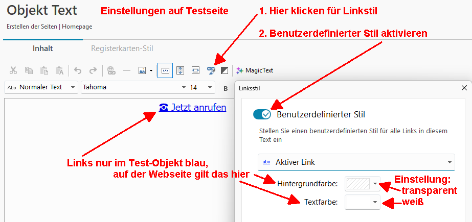 Als Ergänzung noch diese Einstellungen bei den Links, siehe Screenshot