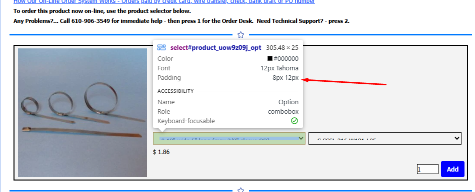 inspecting the selector I can see a padding of 8 px and 12 px, which matches this custom code, could you check?