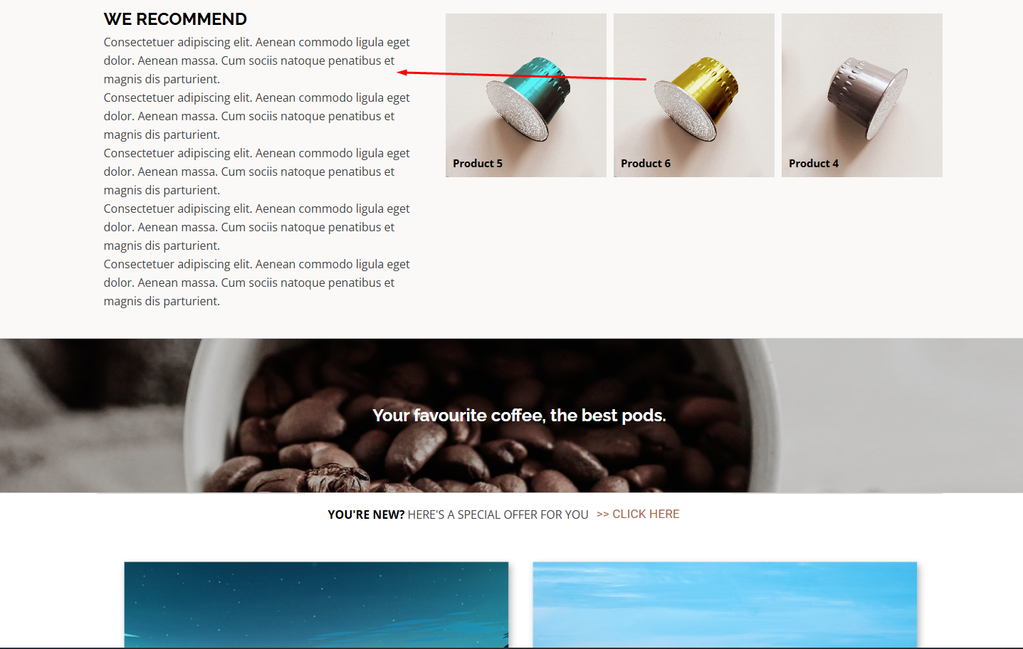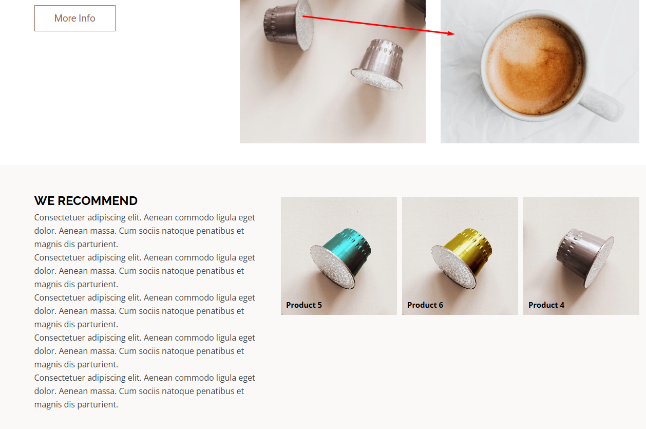 J’ai testé ces trois types d’ancrage, mais dans les trois cas, le lien vers l’ancre amène l’objet en haut de la page. Par exemple, les ancres ici sont l’image avec une tasse de café et le texte NOUS RECOMMANDONS.