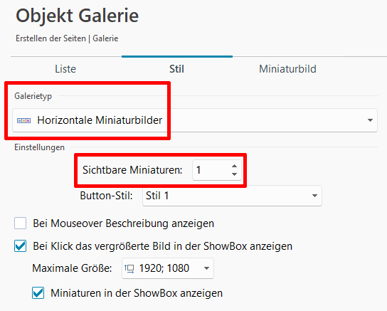 Das geht mit dem Objekt "Galerie" und die rot markierten Einstellungen, siehe Screenshot