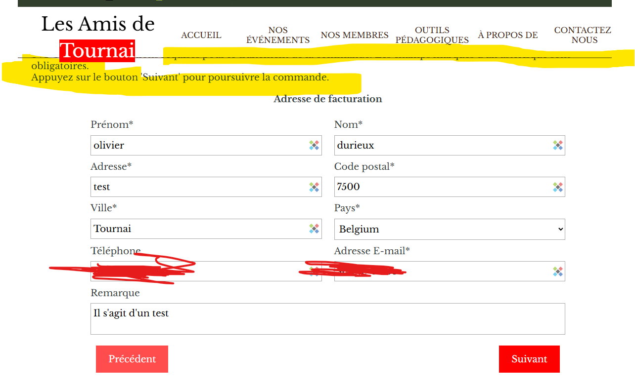 Assez intuitif, je m'en sors assez vite mais j'ai besoin de personnaliser le formulaire après la validation du panier. L'ASBL fait appel très souvent à des personnes âgées et sans les encadrés pour compléter les champs, non seulement ce n'est pas esthétique mais comme c'est invisible, j'entends déjà dire que le formulaire est en panne.