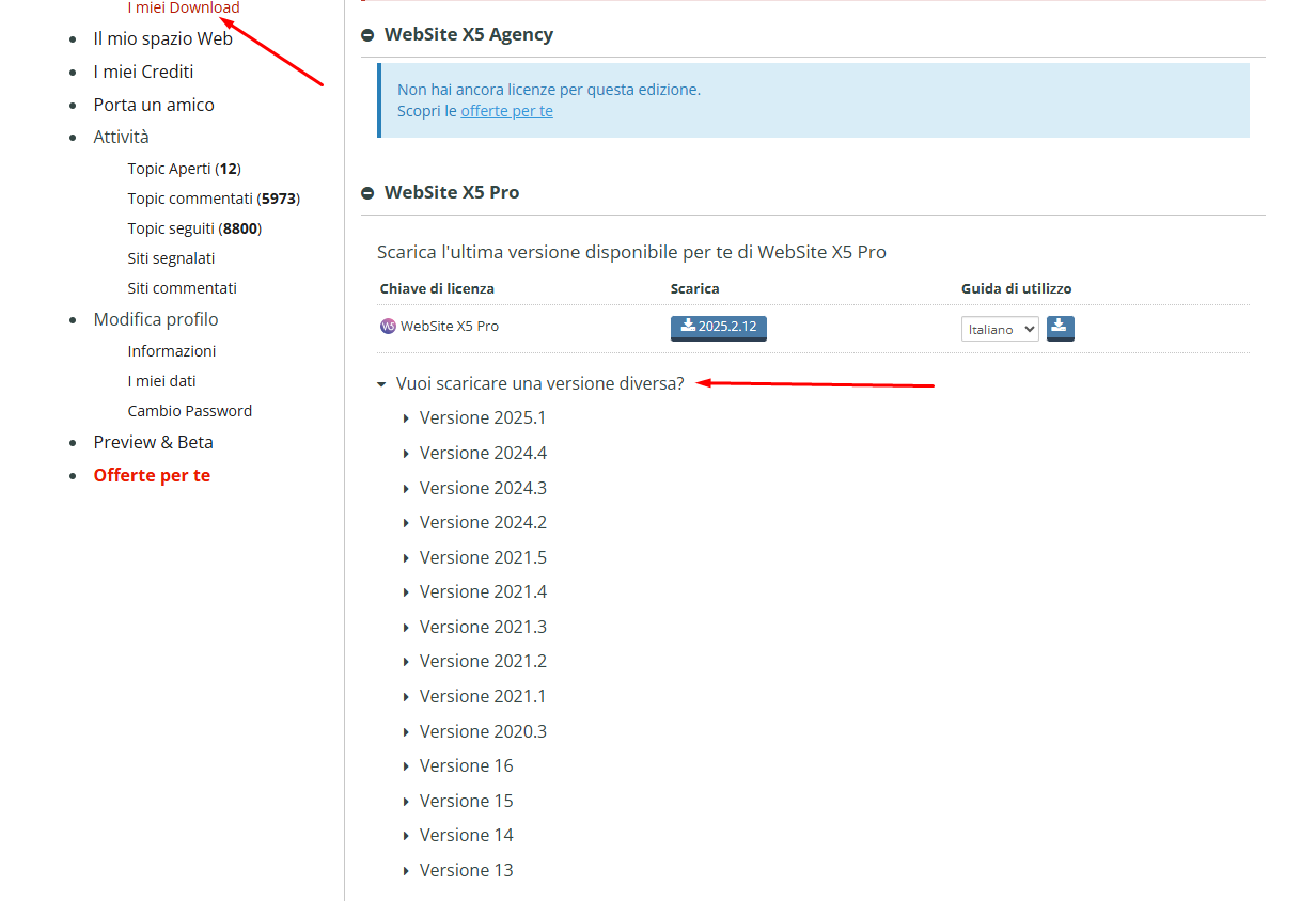 Se non hai modo di reinstallare una delle versioni del programma (trovi gli installer nell'apposita sezione dei Download in Le Mie Licenze), fornendoci una copia del progetto potremo procedere in tua vece alla conversione graduale.