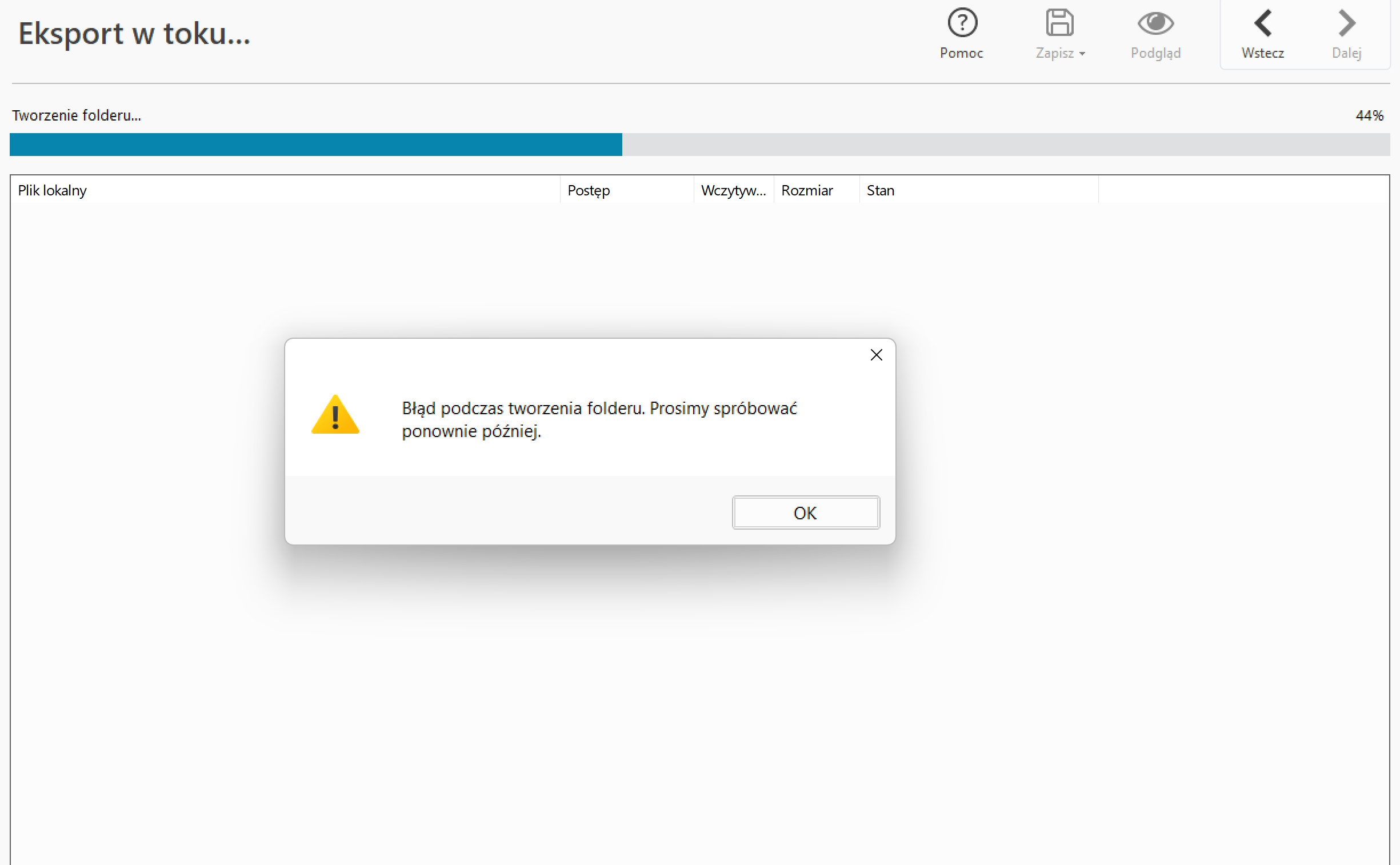 Czasami też podczas tworzenia folderów ( po kliknieciu już wyślij na serwer ) wyskakuje komunikat ,, bład podczas tworzenia folderów "