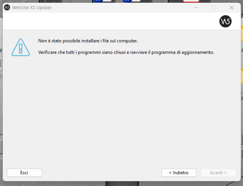 6) Con VPN (se ne fai uso), antivirus e firewall temporaneamente disabilitati, esegui come amministratore l'installer che puoi scaricare qui: https://static.incomedia.eu/websitex5.com/v2026.1/2026.1.5.0/wsx5_pro.exe