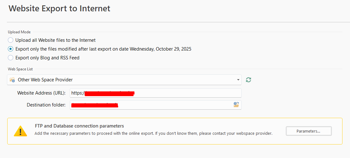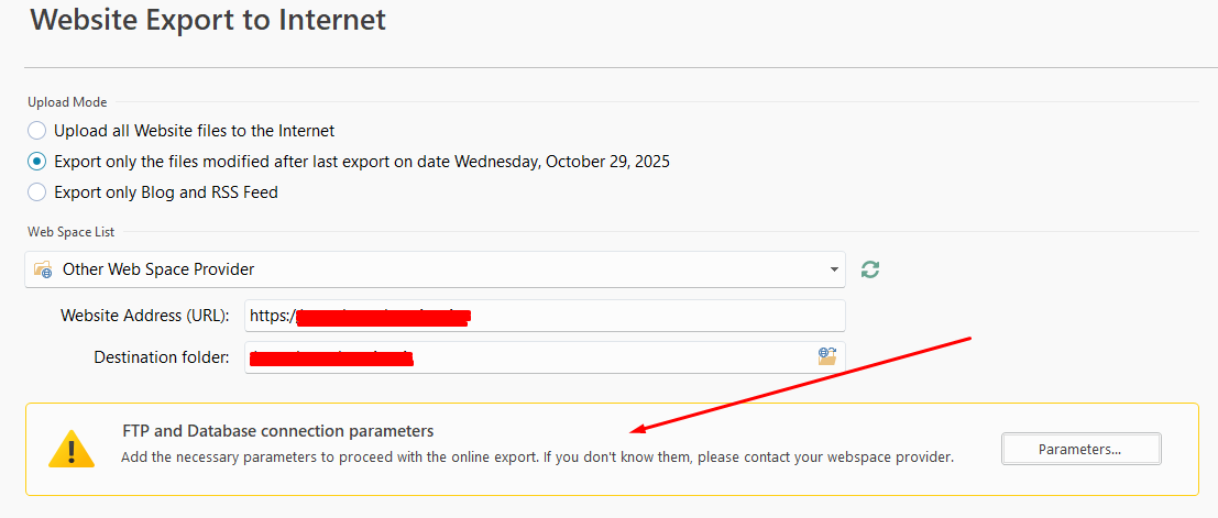 Quando ora pubblico un sito mi chiede i parametri di pubblicazione del database
