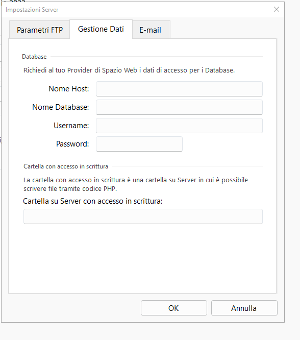 Non so cosa inserire in qeusta maschera non avendo database sul sito
