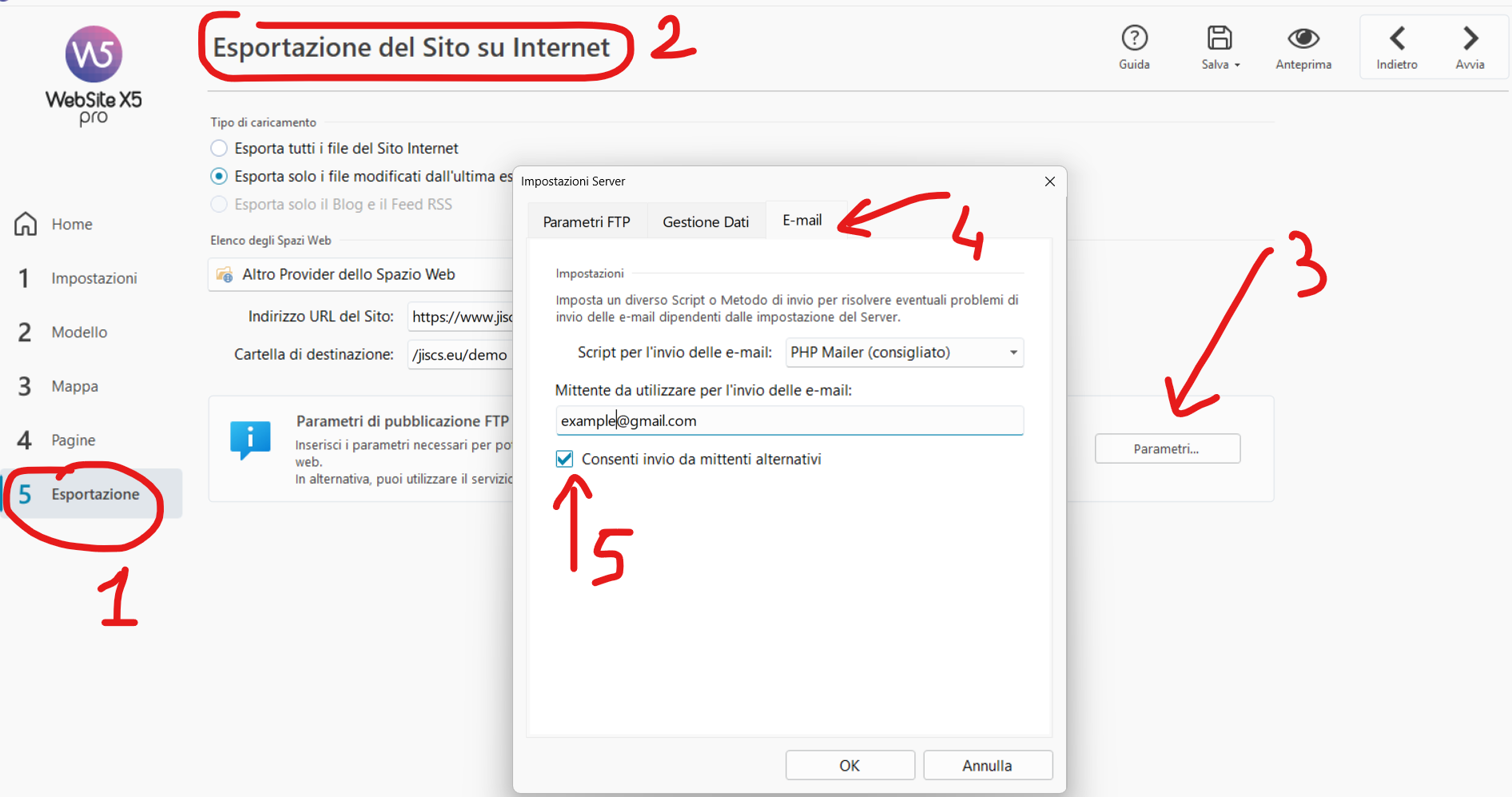 Da molti ani utilizzo WEbsite X5 Pro. Un tempo, utilizzandoil modulo di contatto, ricevevo le email dal mottnete reale. Ora le emeil mi giungono dalla mia email. Ho bisogno di ricevere le emeail dal mittente reale. Ho sempre utilizzato Aruba come server e attualmente nei parametri di esportazione Email ho settato SMTP - smtps.aruba.it SSl porta 465 poi il mio indirizzo emal e la voce "Allow sending from alternative senders" non è abilitata.