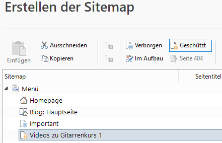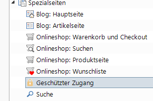 Bearbeiten lässt sich der Login-Bereich in WebSite X5 unter "3 Sitemap", hier ganz unten bei den Spezialseiten "Geschützter Zugang" (1) markieren und oben auf "Eigenschaften" klicken.