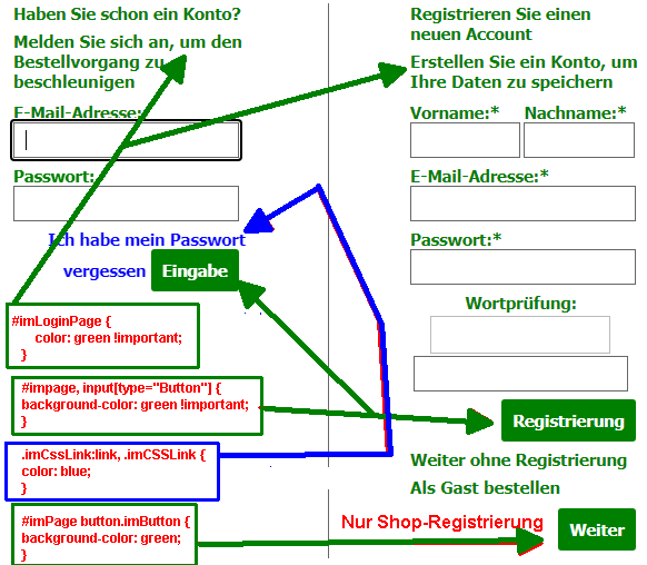 Hinweis: Die CSS-Angaben der Farben betreffen normale und Shop-Registrierung.