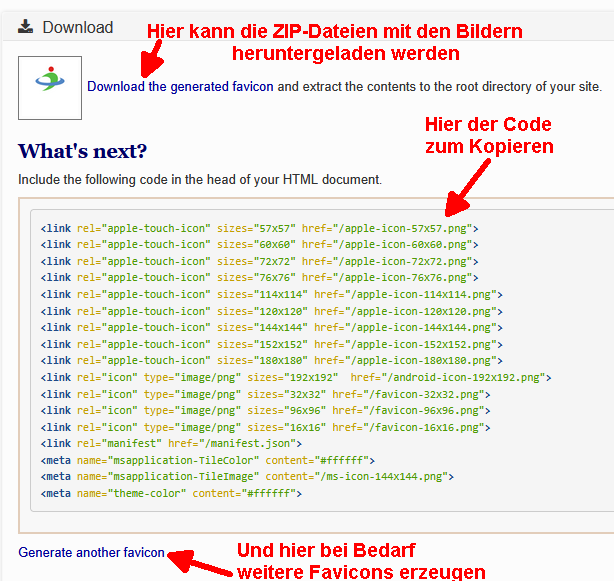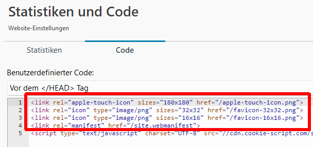 Ich habe meine Favicons mit einem kostenlosen Favicon-Generator generieren lassen und den erstellten Code in WebSite X5 unter ...