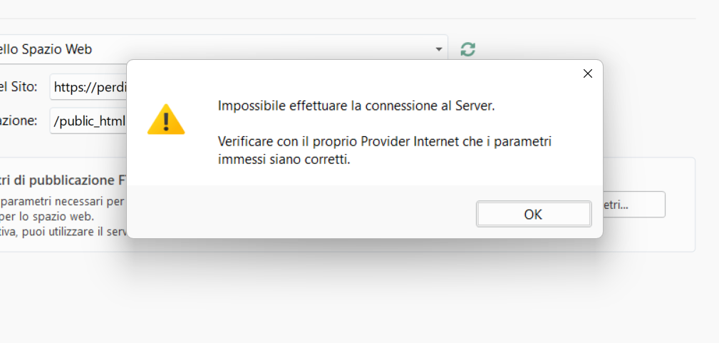 ho riverificato le credenziali fornite e confermo che sono corrette e mi permettono di raggiungere il server.