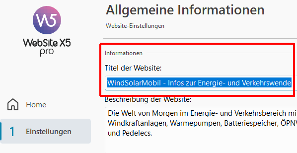 2) Then click the "Advanced" tab (it should be called "Expert" in the English version) and enter the page title under SEO. This will then be supplemented by the entry under "1 Settings > General Information" in the "Page Title of the Website" field.