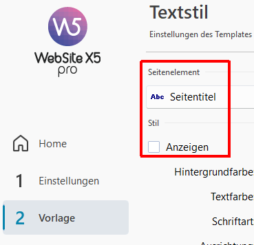 3) This display can be hidden under "2 Template > Text Styles, Fields and Buttons" by removing the checkmark next to "[_] Show" for the page element "ABC Page Title".