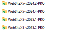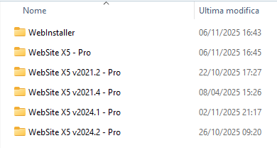 al momento hai due cartelle distinte per queste versioni, ovvero WebSite X5 v2025.1 - Pro al percorso C:\Programmi e WebSite X5- Pro al percorso C:\Utenti\NomeUtente\AppData\Local\Programmi?