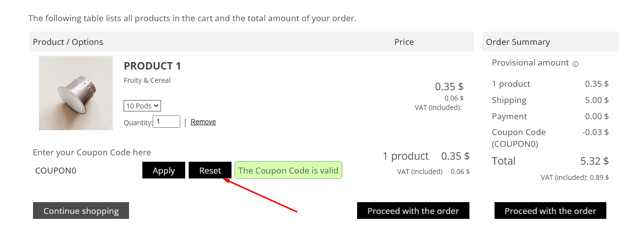 Resettare i codici coupon