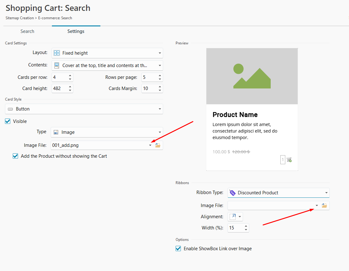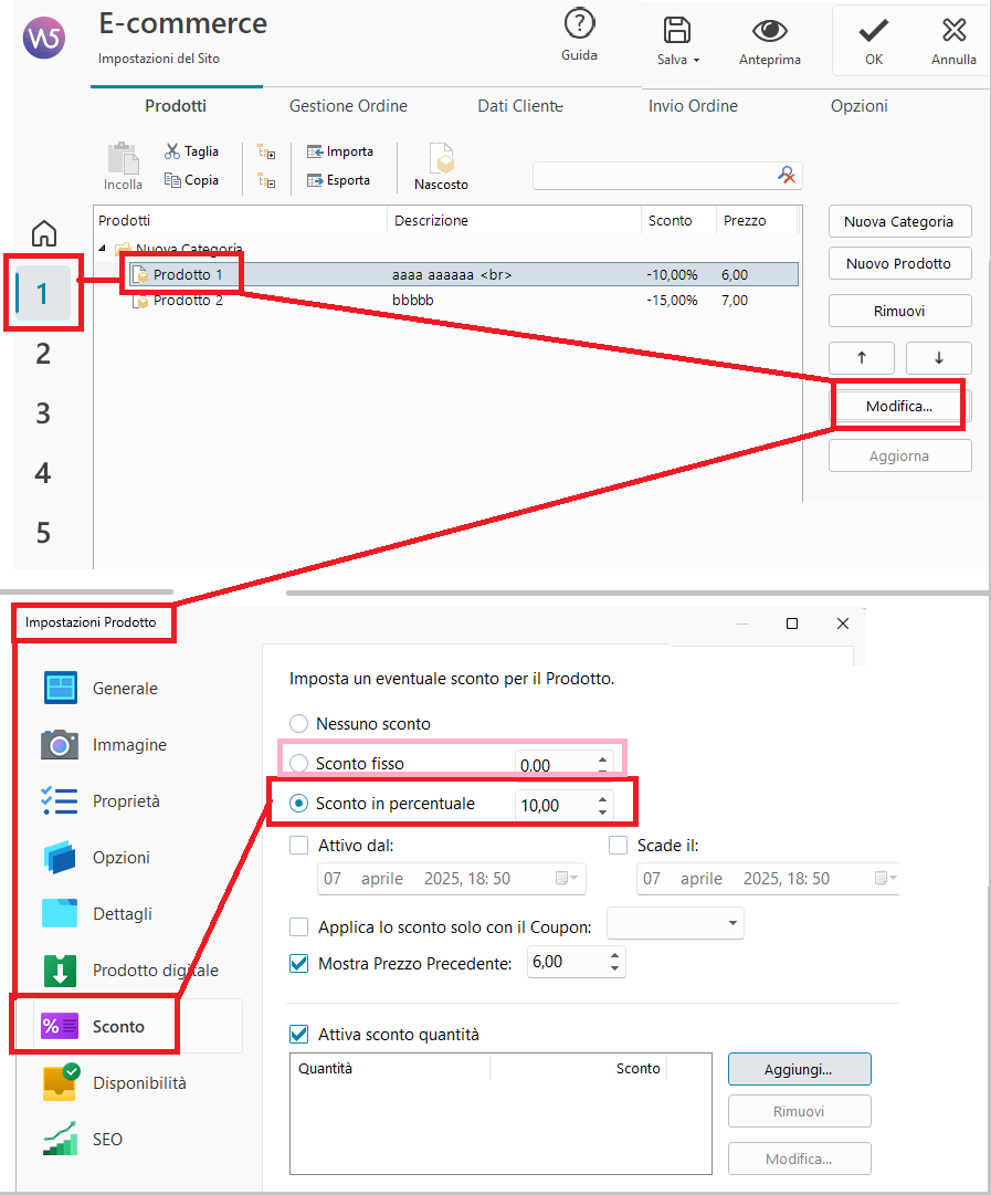 >> Incomedia WebSite X5 - Finestra Impostazioni Prodotto