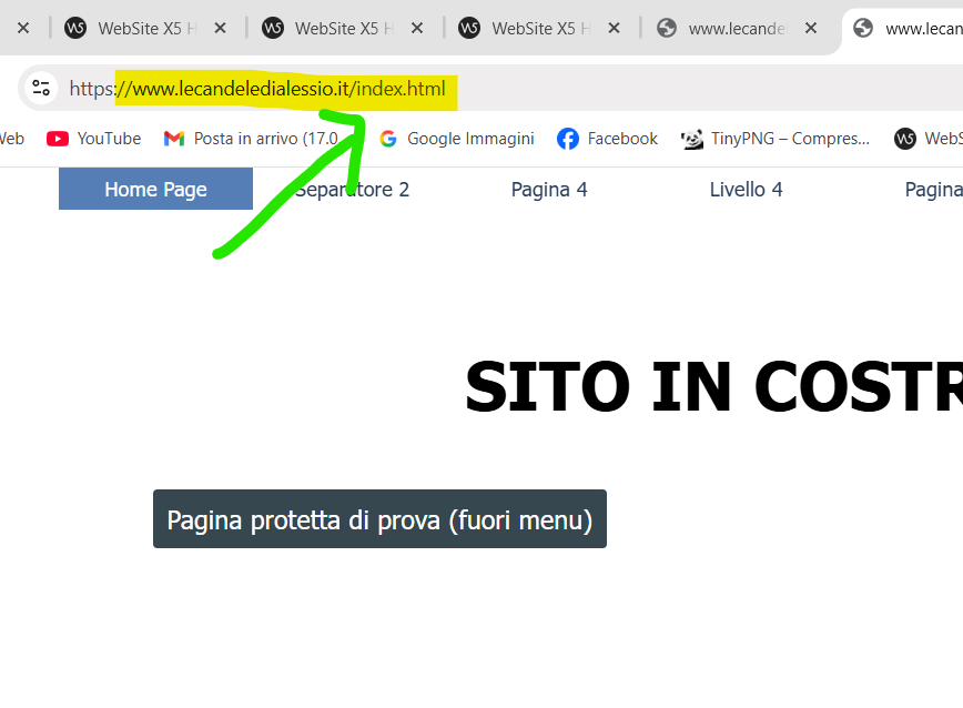 Per assicurarti di quale sia quello da eliminare, puoi verificare l'attuale estensione della homepage nelle Proprietà.
