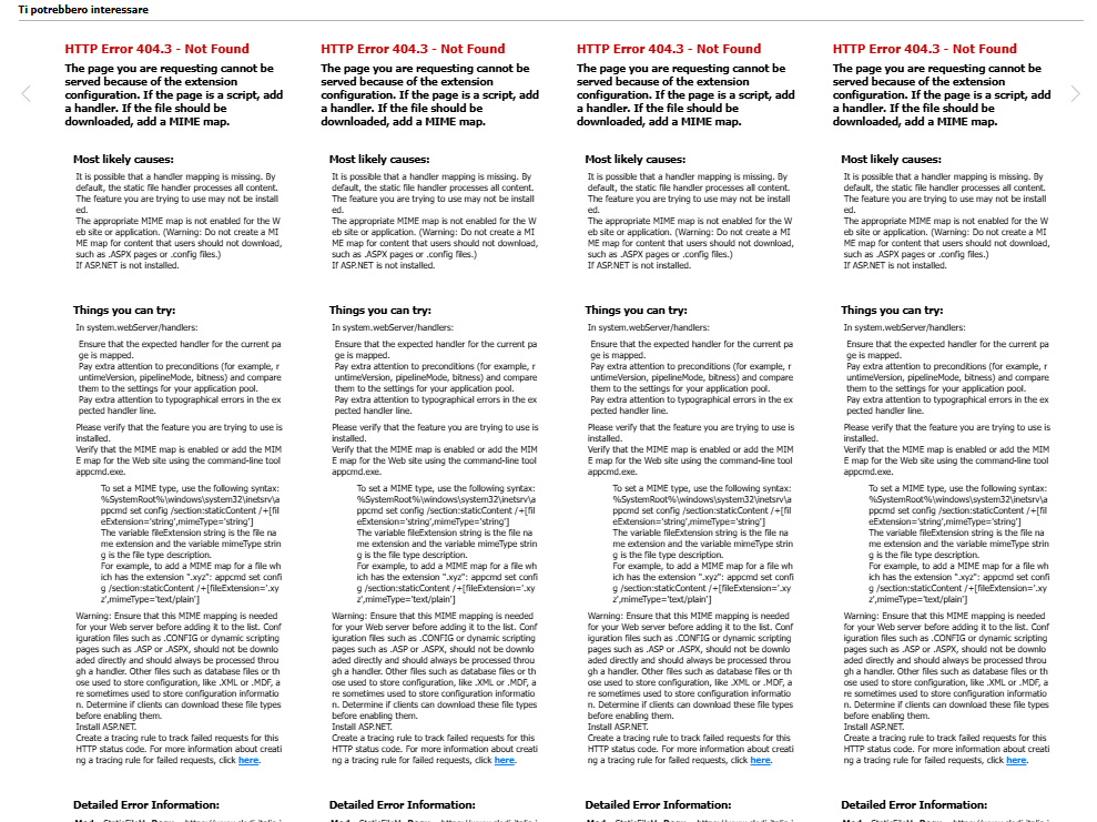 l'errore 404.3 è legato alla configurazione del tuo hosting: esso al momento non supporta i file di tipo .hbs, necessari per visualizzare le card dei prodotti.