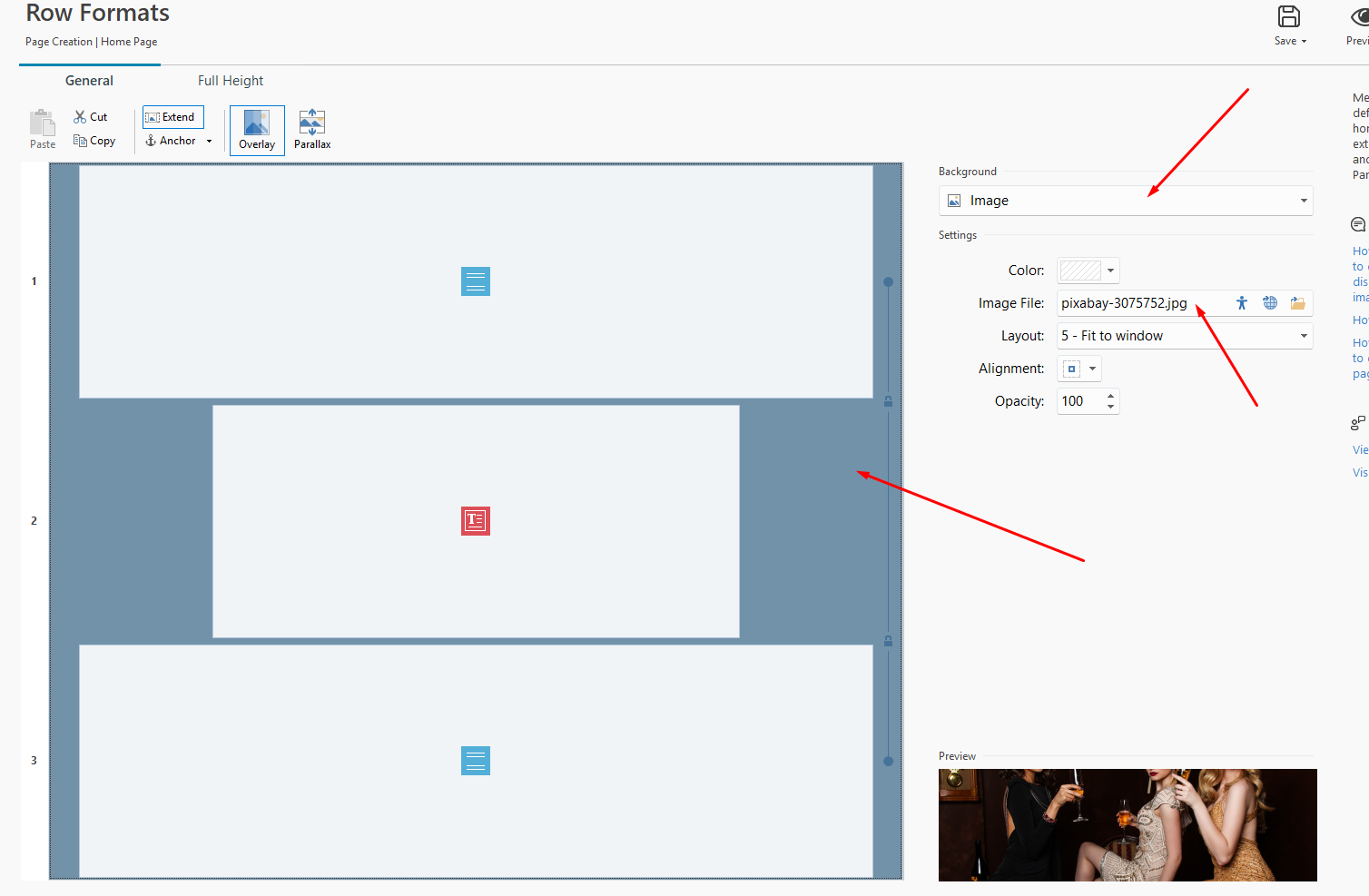 l'immagine è impostata come sfondo nella sezione Stile Righe: