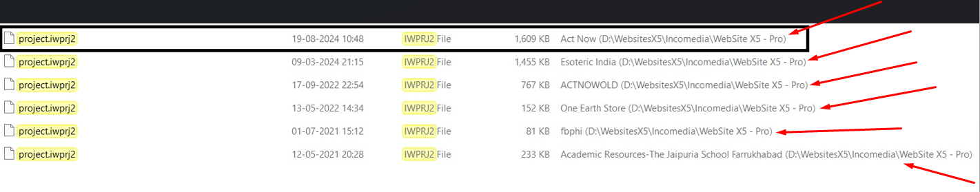 1) I have set the path to D:\WebsitesX5\Incomedia\WebSite X5 - Pro - I can't see any projects when X5 loads. Nor can I see any .iwzip file in the folder D:\WebsitesX5\Incomedia\WebSite X5 - Pro -