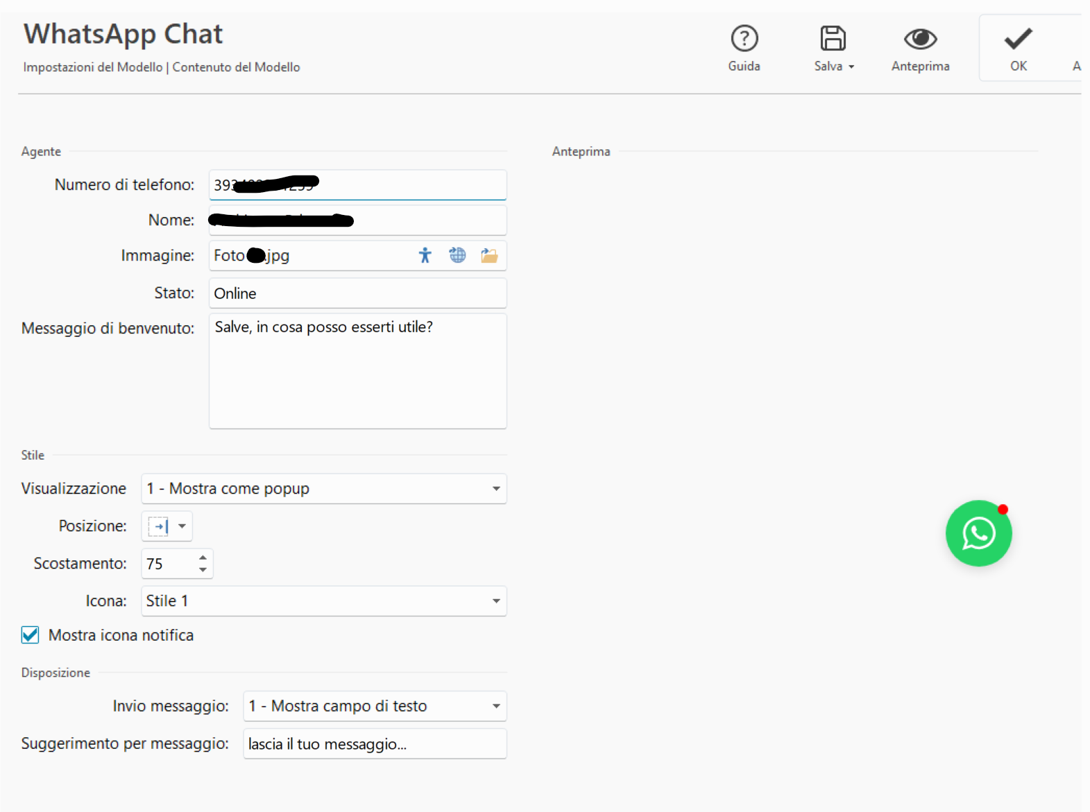 ... oppure, se poi vuoi usare con un solo click in un secondo la mia vecchia ed "originale" invenzione con DIV_CUSTOM, con le caratteristiche FISSE che avevi chiesto, e facilmente personalizzabile per nr.tel., messaggio, e icona whatsapp, ...avvisami...