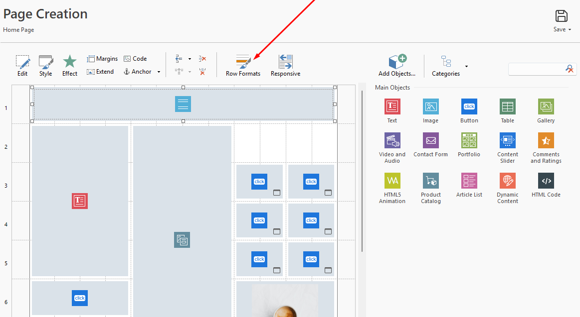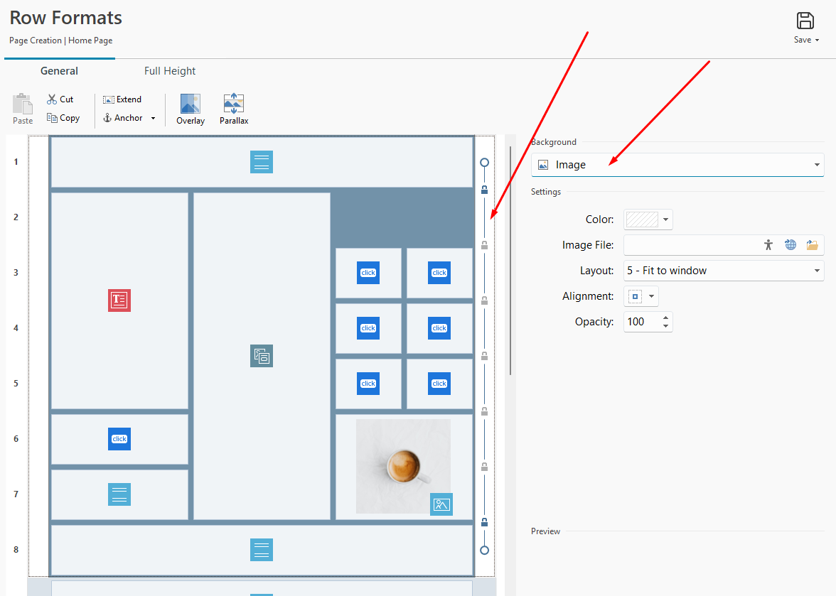 la imagen en cuestión debería encontrarse como fondo en la configuración de Formatos de fila de la página.
