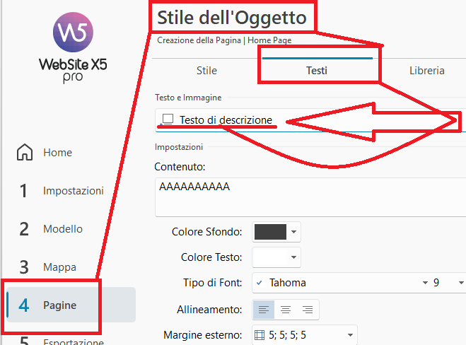 una volta selezionato un oggetto è possibile modificarne i margini dall'apposita sezione.